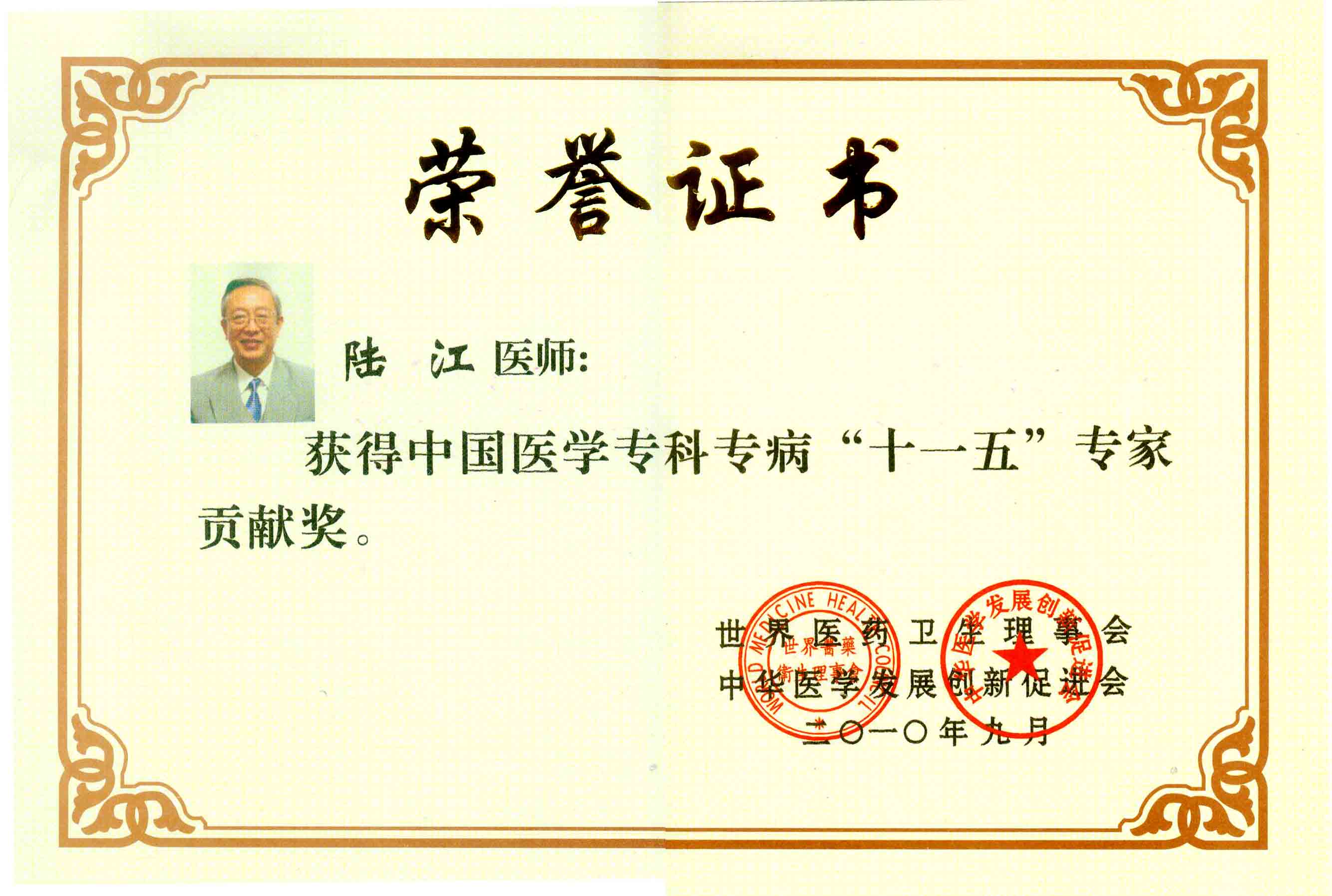 陸江獲得中國醫(yī)學(xué)專科專病優(yōu)秀專家恃別貢獻(xiàn)獎