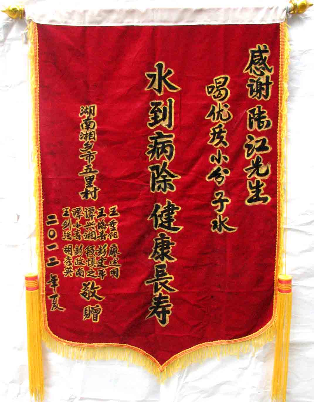2015年潘志山主動寫一篇感想《我以親身實(shí)踐打破了冠心病、高血壓、糖尿病需終生服藥的神話》說堅(jiān)持按發(fā)明人陸?江先生倡導(dǎo)的用已饑方食的方法合理膳食,我的健康狀況越來越好:糖尿病造成的視力下降有了明顯的恢復(fù),末梢神經(jīng)炎導(dǎo)致的指端潰爛現(xiàn)在完全痊愈,痔瘡自從飲用微小分子團(tuán)水半年后就再也沒有復(fù)發(fā)過,氣滯血瘀造成的嘴唇暗紫也漸漸變得紅潤,舌下靜脈黑紫消失,足背的動脈由以前的隱約感到跳動現(xiàn)在變得清晰有力。[13]潘先生披露的訣竅,一是飲用微小分子團(tuán)水給脫水細(xì)胞補(bǔ)水,二是已饑方食”養(yǎng)生智慧,患者都能做到。